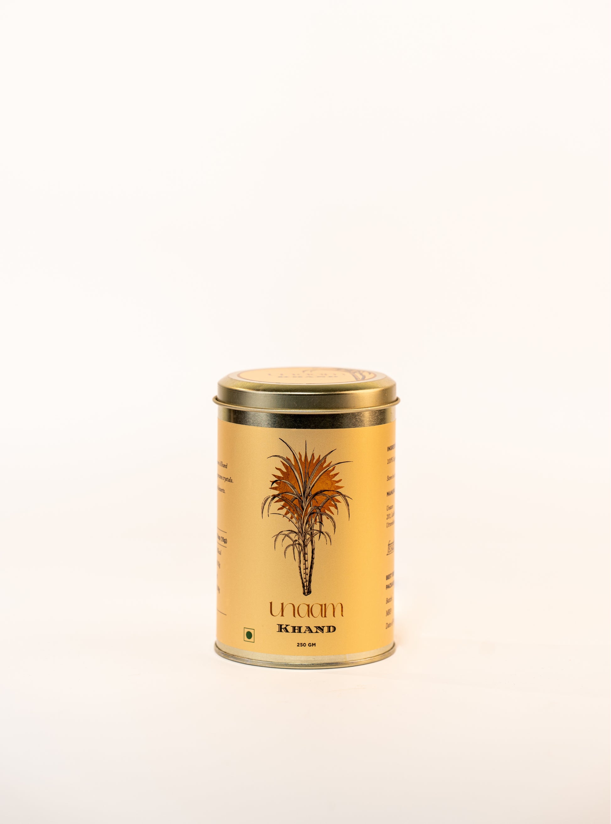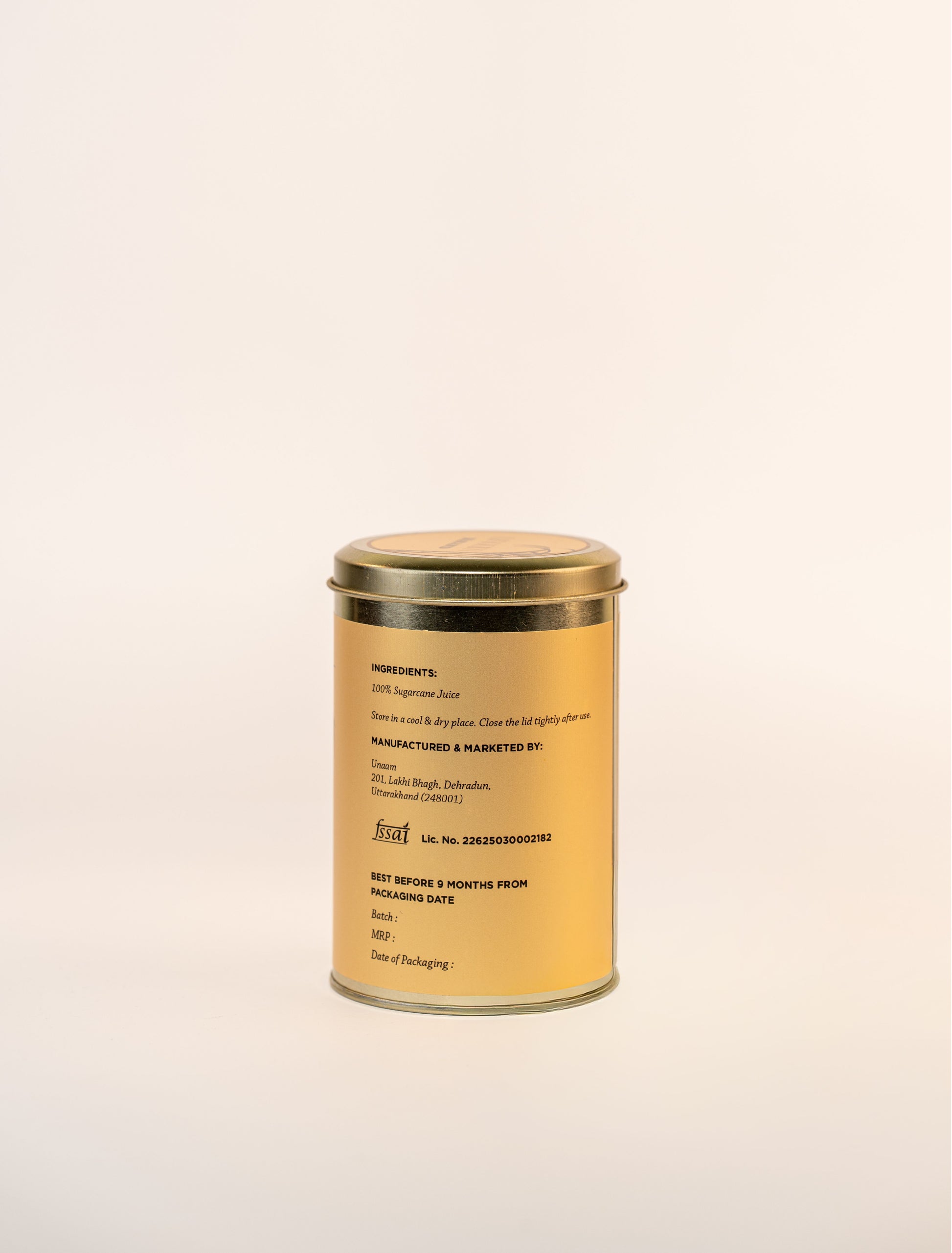 100% unrefined sugarcane crystals. Add it to your everyday drinks for a sweet kick and enjoy the smooth flavour of Unaam's khand. A wholesome sugar alternative for a healthier lifestyle. Comes in a reusable tin container.