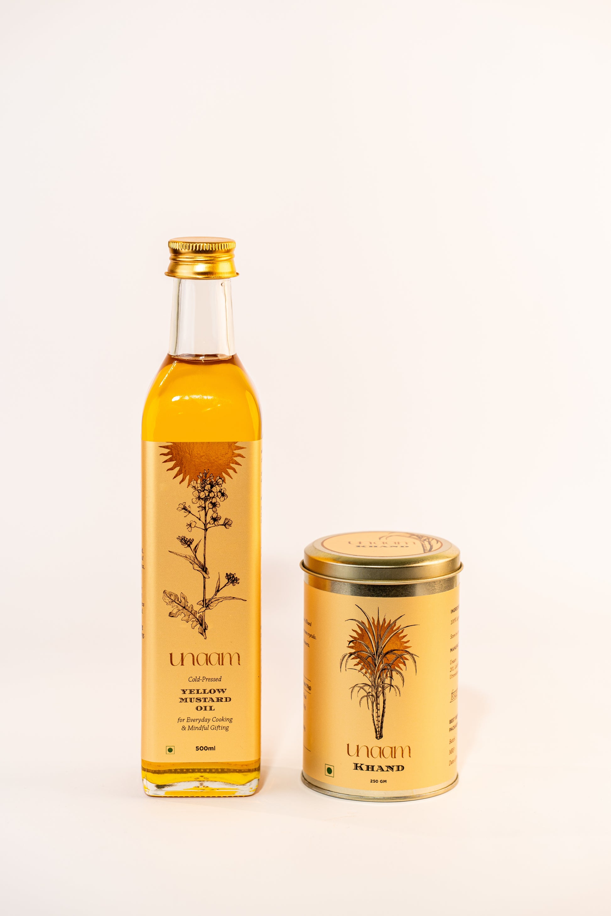 The essentials set contains our yellow mustard oil along with our natural sweetner khand. Both these products are the lifeline of a kitchen shelf. Ideal for health concious food enthusiasts and home chefs. Serves as a perfect gift for the hostess.